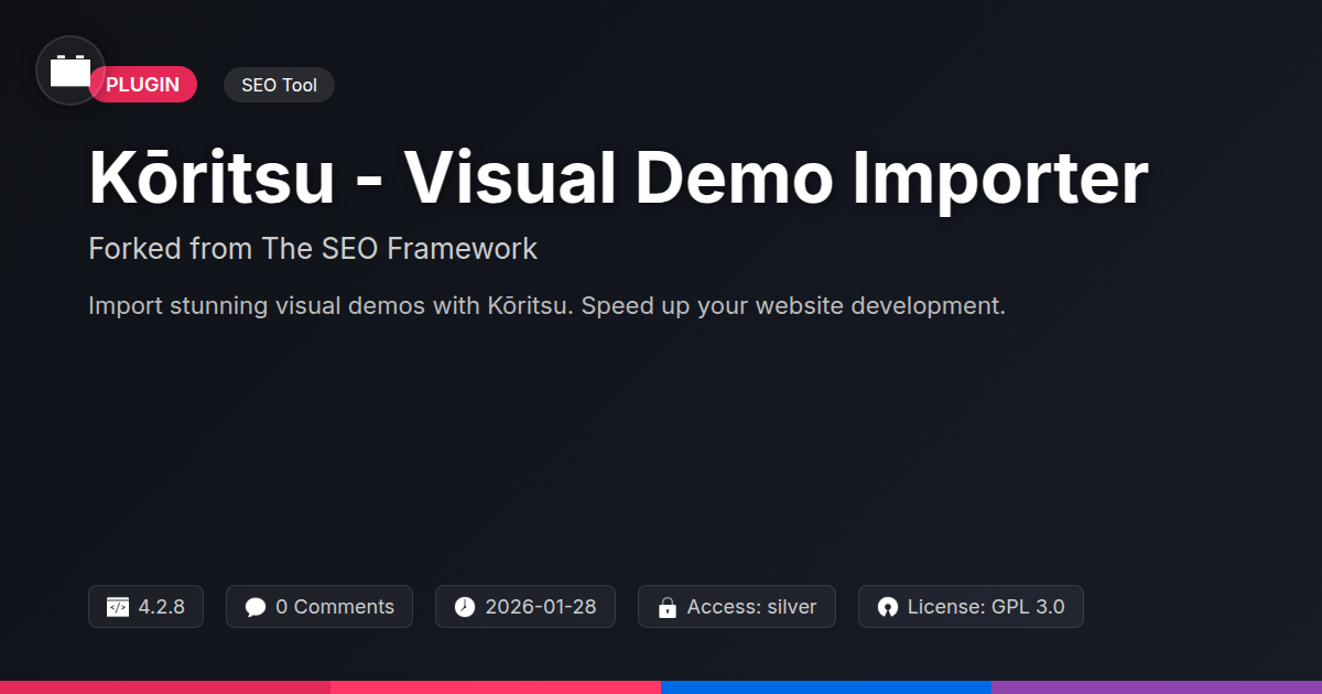 Ever stare at a blank slate of a new website project and feel that existential dread creep in? You know, the one that whispers, "This is going to take forever?" We've all been there. Building a website from the ground up, pixel by pixel, can feel like an Olympic sport for masochists. That's where the magic of pre-built demos swoops in, offering a lifeline to your sanity and your deadline. But let's be honest, the process of actually getting those demos onto your site can be tedious, buggy, and frankly, a bit of a nightmare. You click a button, and suddenly your site looks like it survived a digital earthquake. What if there was a way to bypass the headache and get straight to the good stuff – customizing your awesome new site? What if you could import stunning visual demos with the confidence that everything will just… work? Enter Kōritsu - Visual Demo Importer. This isn't just another import tool; it's born from a legacy of robust functionality, refined to bring you a streamlined, visually focused experience. We're talking about getting your development environment prepped with beautiful, functional demos faster than you can say "import error." Designed for the discerning developer, the time-strapped agency, and the open-source evangelist who appreciates a tool that just does its job, Kōritsu is your new best friend for kicking off web projects with a bang, not a whimper. Because life's too short for import failures.