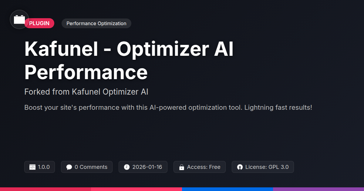 GrootMade is NOT affiliated with Kafunel Optimizer AI or its original author. Kafunel Optimizer AI™ is a trademark of its respective owner and use of it does not imply any endorsement or affiliation. This product has been forked under the GNU General Public License (GPL) and all non-GPL assets (such as proprietary images, fonts, and branding) have been removed. Distributing GPL-licensed code is 100% legal.