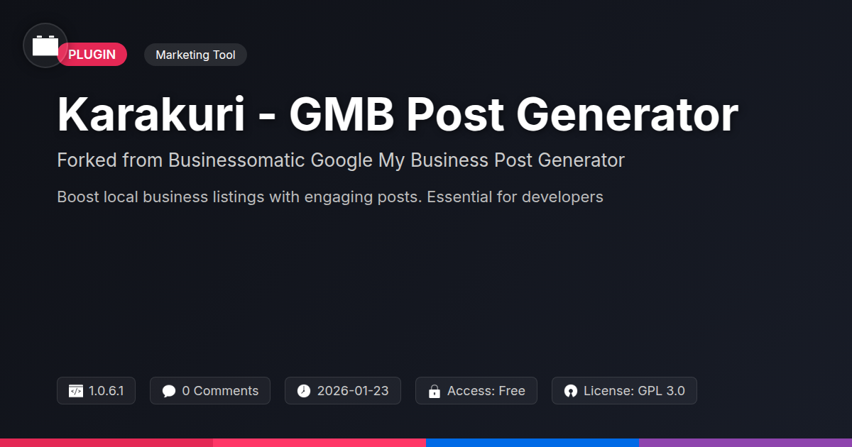 So, there you have it. In the grand theater of online business presence, a silent listing is a missed opportunity, a digital tumbleweed blowing through the digital desert. You, the discerning developers, the savvy agency titans, and the noble guardians of open-source ethos, deserve better. You need tools that are not just functional, but smart, efficient, and – dare we say – a little bit fun. Karakuri - GMB Post Generator isn't just about churning out content; it's about breathing life into those crucial local connections. It’s about turning potentially overlooked business profiles into vibrant hubs of information and engagement, drawing in curious clickers and converting them into loyal customers. By taking a proven, robust foundation and giving it a fresh, developer-centric spirit, we’re offering you a pathway to genuinely elevate your clients' (or your own) local marketing game. Forget the endless hours staring at a blank screen, wondering what to post next. Forget the fear of your listings gathering digital dust. Embrace the power of consistent, compelling communication. It’s time to stop being a whisper in the online crowd and start being a clear, engaging voice that resonates with your local community. Your clients will thank you, your bottom line will sing, and who knows, you might even find a little more joy in the process. Now, go forth and make those listings shine – the digital world is waiting.