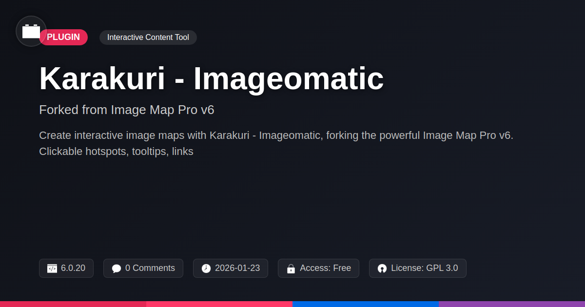 So, there you have it. You’ve journeyed through the landscape of static imagery and arrived at the vibrant, interactive future. You've seen how Karakuri - Imageomatic isn't just another plugin; it’s a finely tuned instrument for creating visual experiences that captivate and convert. No more wrestling with clunky interfaces or begging for miracles from poorly supported tools. This is the elegantly engineered solution you’ve been searching for – the one that makes your work shine and your clients beam with approval. It's about transforming passive viewers into active participants, guiding them through your content with intuitive clicks and revealing layers of information that a flat image could only dream of. Think of the time saved, the creative headaches averted, and the sheer satisfaction of delivering polished, professional results that truly make an impact. Whether you're a seasoned developer looking for that perfect tool to flex your skills, an agency aiming to impress with cutting-edge visuals, or an open-source enthusiast who appreciates well-crafted, extensible solutions, this tool delivers. It’s the kind of plugin that makes you wonder how you ever managed without it, a testament to the thoughtful development that underpins its functionality. So, next time you’re faced with an image that needs to do more than just sit there, remember the power that awaits. Embrace the interactivity, elevate your designs, and let your visuals tell a richer, more compelling story. The era of the dynamic image is here, and it's remarkably accessible.