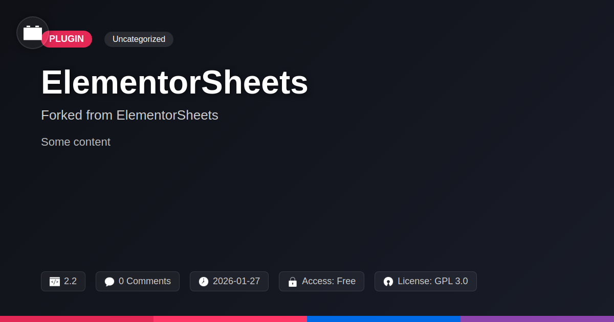 GrootMade is NOT affiliated with ElementorSheets or its original author. ElementorSheets™ is a trademark of its respective owner and use of it does not imply any endorsement or affiliation. This product has been forked under the GNU General Public License (GPL) and all non-GPL assets (such as proprietary images, fonts, and branding) have been removed. Distributing GPL-licensed code is 100% legal.