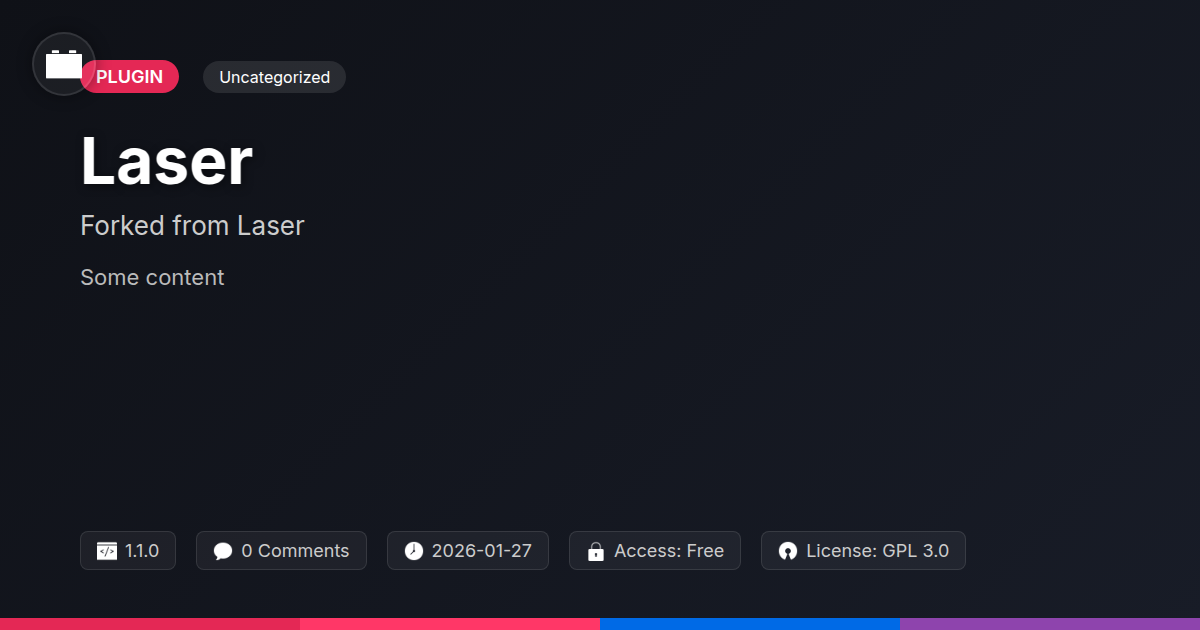GrootMade is NOT affiliated with Laser or its original author. Laser™ is a trademark of its respective owner and use of it does not imply any endorsement or affiliation. This product has been forked under the GNU General Public License (GPL) and all non-GPL assets (such as proprietary images, fonts, and branding) have been removed. Distributing GPL-licensed code is 100% legal.