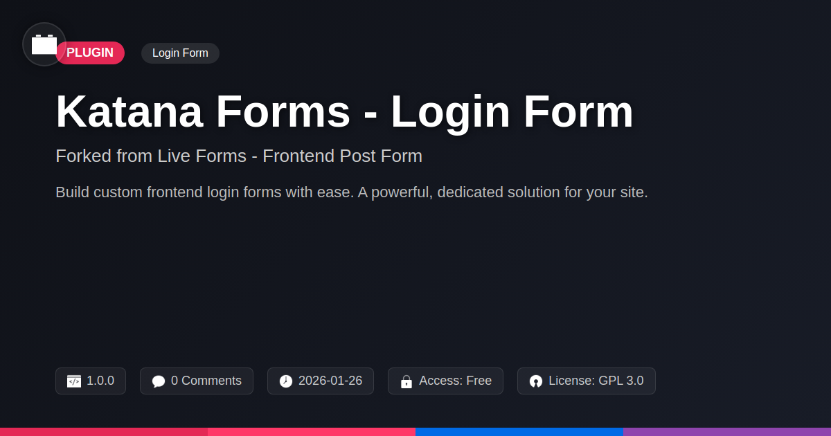 So there you have it. We’ve peeled back the layers of Katana Forms - Login Form, and hopefully, you’re left with a potent brew of excitement and a newfound respect for what a well-executed fork can achieve. You’re not just getting another plugin; you’re getting a meticulously crafted tool that respects your craft. Whether you’re a solo developer trying to wrangle a client’s unruly website, an agency aiming to deliver seamless user experiences across multiple projects, or an open-source aficionado who believes in the power of shared innovation, this is a solution designed with you in mind. Forget the endless tinkering with code that feels like wrestling a greased pig – Katana Forms - Login Form offers the control and flexibility you crave, without the unnecessary baggage. It’s the elegant solution you’ve been searching for, the one that makes sense when you look at the big picture. So, go ahead, ditch those outdated, cookie-cutter forms and embrace a tool that’s as sharp and efficient as your own development process. It's time to build login experiences that are not just functional, but truly reflective of the quality and care you put into your work. Make the smart choice, and let Katana Forms - Login Form be the sharpened edge that helps you conquer your next development challenge.