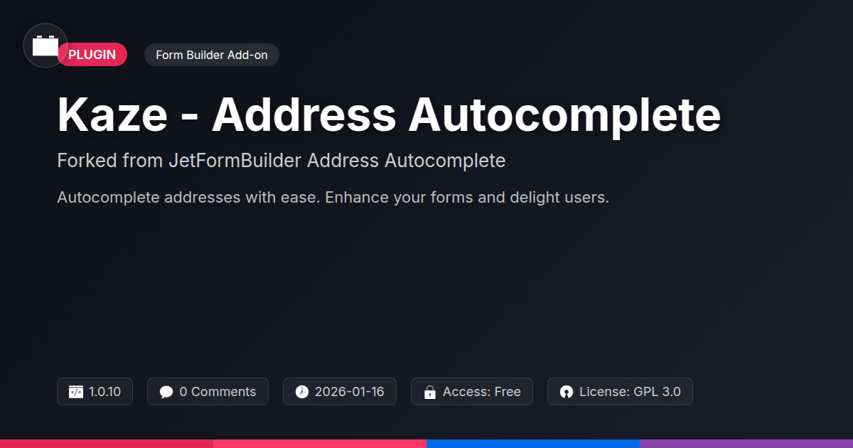 Whether you’re a seasoned pro wrangling complex client projects, an agency striving for peak efficiency, or a staunch advocate for elegantly functional open-source solutions, this tool slots right in. It respects your existing setup, integrates smoothly, and performs its designated task with an admirable lack of fuss. Think of it as that reliable, no-nonsense colleague who always gets the job done without drama. By embracing address autocomplete, you're not just adding a feature; you're investing in a smoother, more professional, and altogether less annoying digital experience for everyone involved. So go ahead, ditch the data entry drudgery. Your users, your clients, and frankly, your own sanity, will thank you for it. Let Kaze handle the addresses, and you can go back to focusing on what truly matters: crafting exceptional digital experiences.