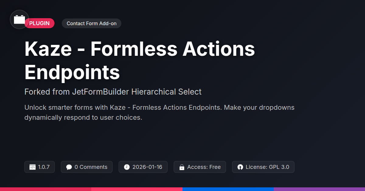 Ever found yourself wrestling with forms, wishing you could make dropdowns… well, smarter? Like, actually show me the related options based on what I just picked? You pore over documentation, squint at code snippets, and try to cobble together some jQuery magic. Meanwhile, your users are clicking through endless, irrelevant choices like they're lost in a digital maze. Sound familiar? We feel your pain. That's why we're here to talk about Kaze - Formless Actions Endpoints – the spiritual successor to that one ingenious add-on you know and love, now forked and ready to tackle those nested selection woes. Forget the days of static, uninspired form fields. Imagine a world where your forms intuitively guide users, unlocking a level of user experience that frankly, your competitors will wish they'd thought of. This isn't just about making forms functional; it's about making them intelligent, engaging, and downright a joy to use (yes, even for forms!). Whether you're a solo dev building the next big thing, an agency crafting slick client sites, or an open-source enthusiast who appreciates elegant solutions, buckle up. We're diving deep into how Kaze can revolutionize your form-building game, making those once-frustrating dropdowns a thing of the past.