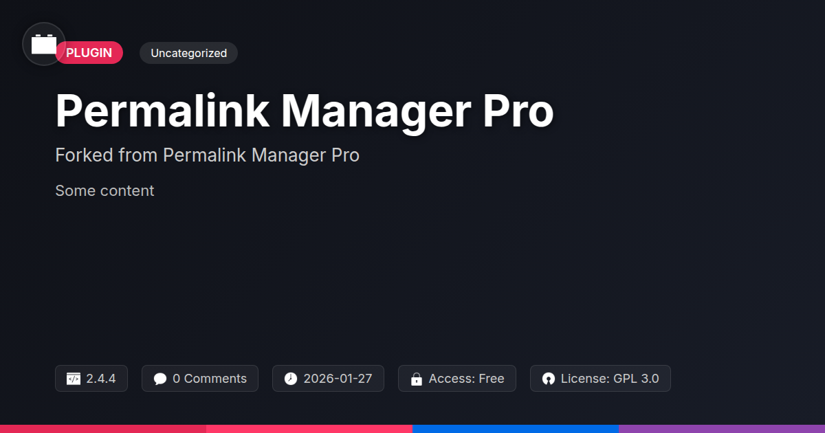GrootMade is NOT affiliated with Permalink Manager Pro or its original author. Permalink Manager Pro™ is a trademark of its respective owner and use of it does not imply any endorsement or affiliation. This product has been forked under the GNU General Public License (GPL) and all non-GPL assets (such as proprietary images, fonts, and branding) have been removed. Distributing GPL-licensed code is 100% legal.