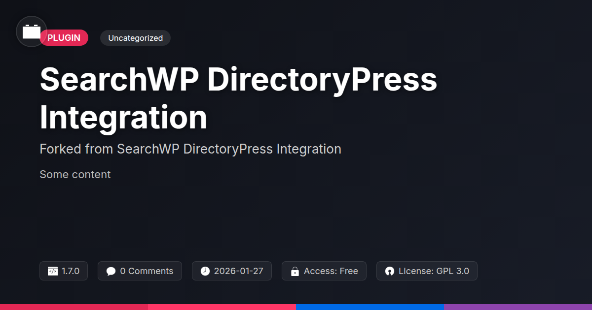 GrootMade is NOT affiliated with SearchWP DirectoryPress Integration or its original author. SearchWP DirectoryPress Integration™ is a trademark of its respective owner and use of it does not imply any endorsement or affiliation. This product has been forked under the GNU General Public License (GPL) and all non-GPL assets (such as proprietary images, fonts, and branding) have been removed. Distributing GPL-licensed code is 100% legal.