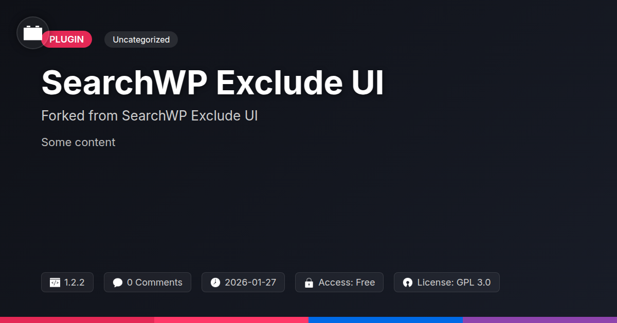 GrootMade is NOT affiliated with SearchWP Exclude UI or its original author. SearchWP Exclude UI™ is a trademark of its respective owner and use of it does not imply any endorsement or affiliation. This product has been forked under the GNU General Public License (GPL) and all non-GPL assets (such as proprietary images, fonts, and branding) have been removed. Distributing GPL-licensed code is 100% legal.