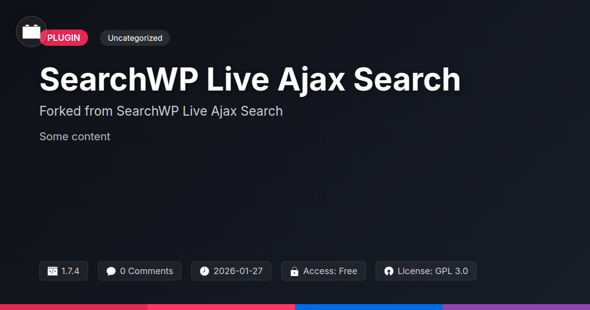GrootMade is NOT affiliated with SearchWP Live Ajax Search or its original author. SearchWP Live Ajax Search™ is a trademark of its respective owner and use of it does not imply any endorsement or affiliation. This product has been forked under the GNU General Public License (GPL) and all non-GPL assets (such as proprietary images, fonts, and branding) have been removed. Distributing GPL-licensed code is 100% legal.