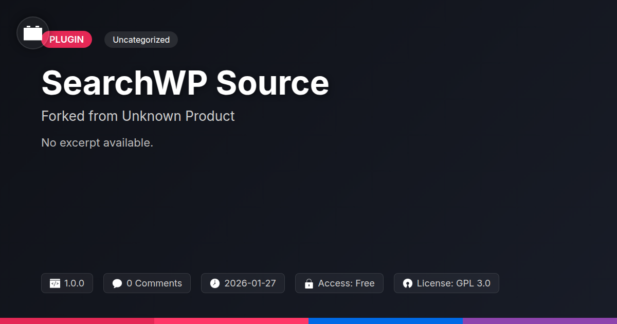GrootMade is NOT affiliated with SearchWP Source - Gravity Forms or its original author. SearchWP Source - Gravity Forms™ is a trademark of its respective owner and use of it does not imply any endorsement or affiliation. This product has been forked under the GNU General Public License (GPL) and all non-GPL assets (such as proprietary images, fonts, and branding) have been removed. Distributing GPL-licensed code is 100% legal.