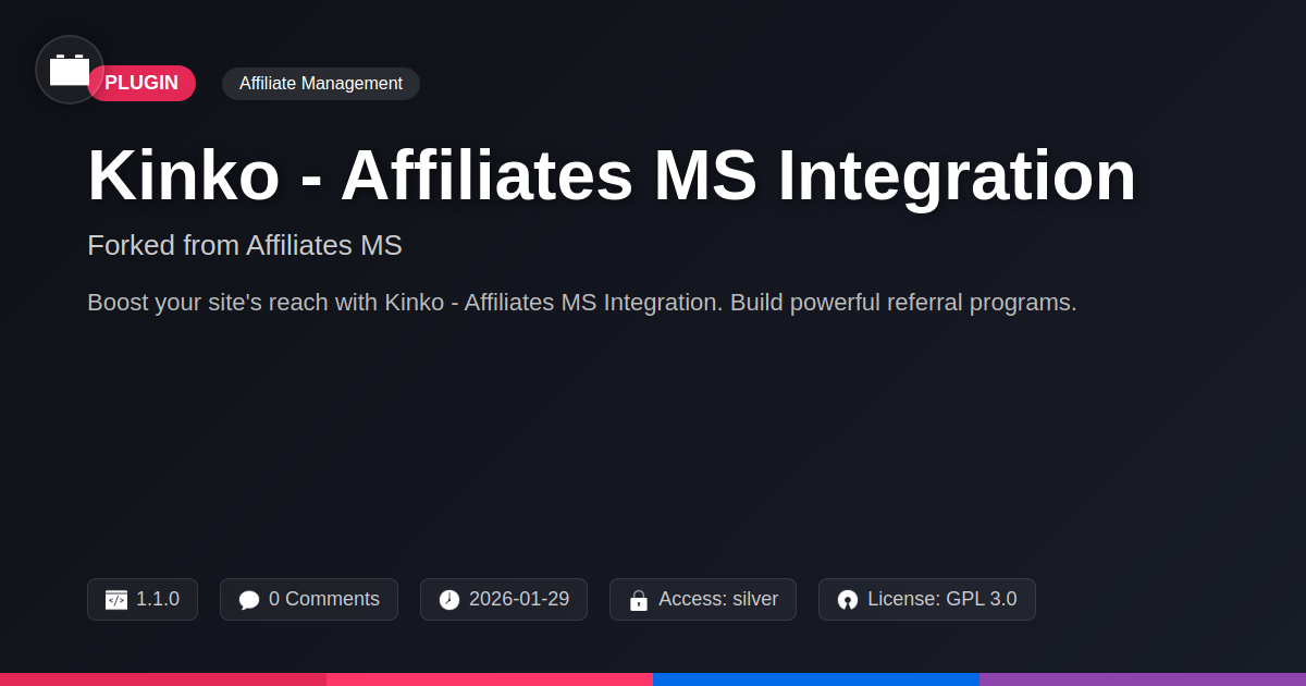 So there you have it. What started as a journey into advanced affiliate management has hopefully revealed a solution that’s not just functional, but genuinely enjoyable to work with. You’ve seen how Kinko - Affiliates MS Integration offers a robust, developer-centric approach, born from a strong lineage but infused with the vibrant spirit of open-source collaboration. It’s for those of you who look at existing tools and think, 'I could make that better,' or 'Why isn't this simpler?' Because you're not just users; you're builders, tinkerers, and problem-solvers. The ability to fork, adapt, and contribute means this isn't a static product you're adopting; it's an evolving ecosystem you're joining. Think of the power: managing your referrals with precision, offering clear and transparent reporting to your affiliates, and having the flexibility to mold the system to your exact needs, all without being beholden to corporate roadmaps or hefty licensing fees. It’s about reclaiming control and building something truly tailored. Whether you’re an agency looking to offer top-tier affiliate management services, a developer creating a niche platform, or simply someone who appreciates elegant, community-driven software, this integration stands ready. Stop wrestling with clunky interfaces and embrace a system that respects your expertise. It’s time to unlock the full potential of your affiliate programs and watch your referrals flourish, powered by a solution as dynamic and forward-thinking as you are.