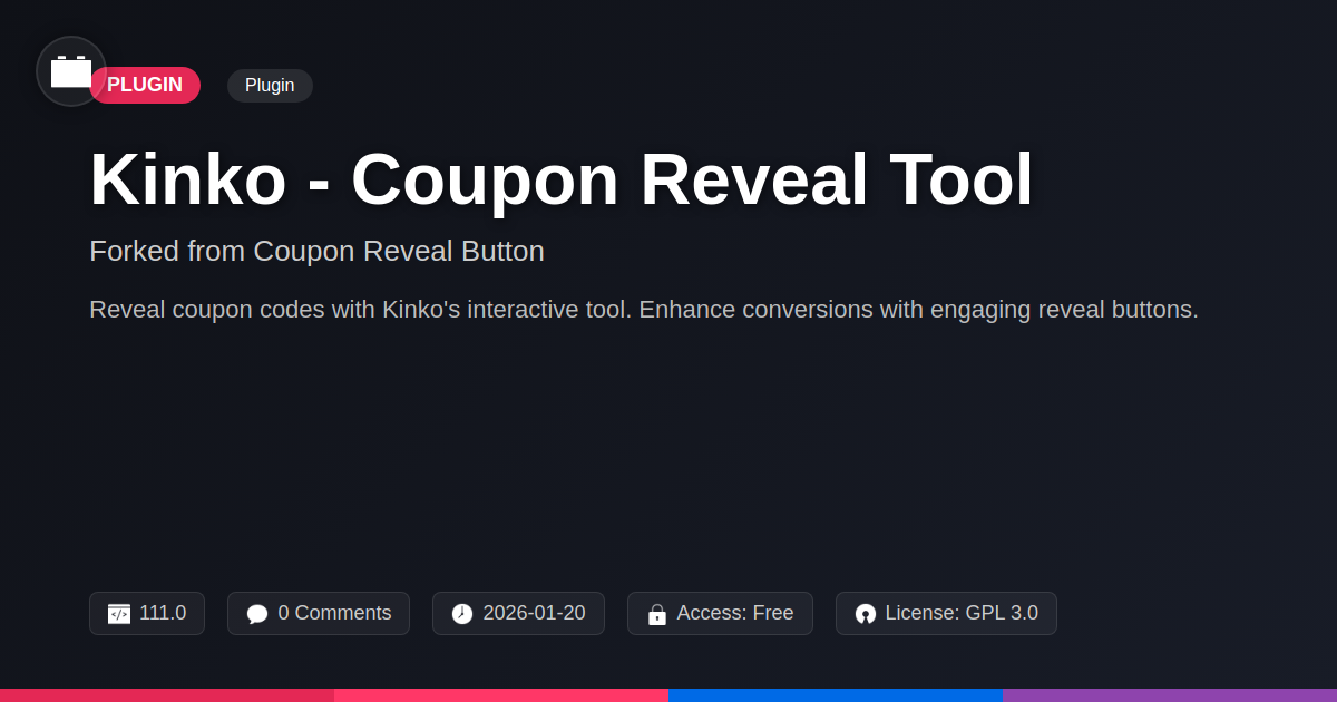 So, there you have it. Kinko - Coupon Reveal Tool: it’s not just another plugin designed to clutter your dashboard. It’s a finely tuned instrument for coaxing clicks and cajoling conversions out of even the most frugal of netizens. For you developers out there painstakingly crafting elegant code, think of Kinko as that perfectly placed semicolon that just makes everything else work. For the agencies wrangling client expectations and bottom lines, this is your secret weapon for delivering demonstrable results without reinventing the wheel. We’ve all witnessed the digital equivalent of shouting discounts into the void, a cacophony of uninspired links that get lost in the noise. Kinko offers a more sophisticated approach, a subtle art of anticipation that transforms passive browsing into active engagement. It’s the digital equivalent of a well-timed wink and a whispered secret – highly effective, and frankly, a lot more fun. Being a fork from a reputable source, and embracing the open-source ethos, means you're not just getting a tool; you're joining a philosophy. A philosophy that values clean code, user experience, and most importantly, tangible results. Stop letting your best deals languish in plain sight, unseen and unclicked. It’s time to reveal your potential. It’s time for Kinko.