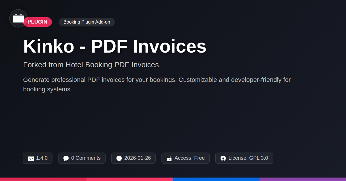 So, there you have it. If you’ve ever found yourself staring blankly at a screen, wondering how to generate a decent-looking invoice for a booking without resorting to arcane rituals or selling a kidney, Kinko - PDF Invoices might just be your new best friend. We get it. The world of web development is a delightful blend of creative problem-solving and wrestling with the digital equivalent of stubborn mules. And let's be honest, invoicing often falls into the 'stubborn mule' category. This plugin, born from a desire to improve on existing functionality, offers a breath of fresh air. It’s for the coders who appreciate a well-structured codebase, the agencies who need reliable tools to impress their clients, and anyone who believes that even the mundane tasks, like generating receipts, deserve a touch of elegance and efficiency. Forget those hastily cobbled-together spreadsheets or clunky, one-size-fits-all solutions. Kinko - PDF Invoices puts the power back in your hands, allowing for customization that truly reflects your brand and your client's needs. It’s about making your business operations smoother, your client interactions more professional, and your life just a little bit easier. Because in this wild, wonderful world of open-source and custom development, having tools that actually work, and work well, is the ultimate win. Give it a whirl, and see if it doesn't make your invoicing workflow a lot less of a headache and a lot more of a breeze. Your future, less-stressed self will thank you.