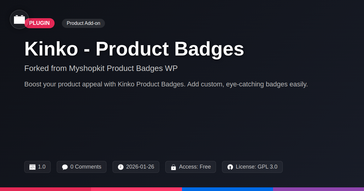 So, there you have it. Your product listings are about to get a serious glow-up, and frankly, they deserve it. If you’ve ever looked at your online store and thought, "This could be sexier," or "Where’s the visual punch?" then Kinko - Product Badges is the answer you’ve been waiting for. It’s the digital equivalent of upgrading from a basic tee to a designer jacket – same function, vastly different impact. For us developers and agencies, it’s about reclaiming our time and sanity. No more wrestling with CSS floats or hunting down elusive z-index values just to slap a 'Sale' badge on a product. Kinko does the heavy lifting, leaving you free to focus on the bigger picture – crafting stellar user experiences and delivering genuine value to your clients. And for the true believers in the open-source movement, this is more than just another plugin; it's a testament to what happens when solid foundations are built upon, shared, and improved. It’s about empowering everyone, from the solo entrepreneur to the bustling agency, with tools that are not only effective but also ethically developed. So, go ahead. Ditch the dullness. Embrace the badges. Make your products irresistible and watch those conversion rates climb. Your customers (and your bottom line) will thank you for it. It’s time to make your products the stars they were always meant to be.