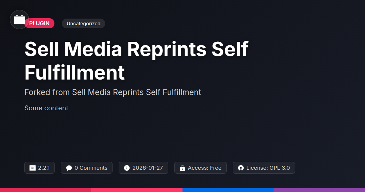 GrootMade is NOT affiliated with Sell Media Reprints Self Fulfillment or its original author. Sell Media Reprints Self Fulfillment™ is a trademark of its respective owner and use of it does not imply any endorsement or affiliation. This product has been forked under the GNU General Public License (GPL) and all non-GPL assets (such as proprietary images, fonts, and branding) have been removed. Distributing GPL-licensed code is 100% legal.