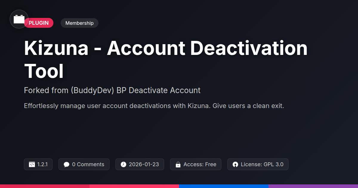 Are you tired of users ghosting your site, leaving behind digital dust bunnies and abandoned accounts that clog up your database? Ever wished you had a polite, yet firm, way to show them the digital door without causing a whole digital kerfuffle? We all know that feeling; that creeping dread when a user decides your platform isn't their cup of tea anymore and just… vanishes. It's like they never existed, except their account is still there, a silent relic in your system. And let's be honest, dealing with these digital departees manually is about as fun as explaining your codebase to your grandma. You’ve probably spent countless hours wrestling with custom code, or maybe you’ve considered just deleting the whole site to make a fresh start – don’t admit it, we all have that dark impulse. But what if there was a way to gracefully manage account deactivations, giving users a clear path out while keeping your site tidy and your developers sane? Enter Kizuna, the elegant solution that takes the pain out of account management. Think of it as your site's polite bouncer, ensuring everyone leaves with dignity, and your server doesn’t become a digital graveyard. This isn't just about removing accounts; it's about maintaining a healthy, functional community space. So, buckle up, developers, agencies, and open-source enthusiasts, because we're about to dive into a tool that will make your user management life significantly less… alarming.