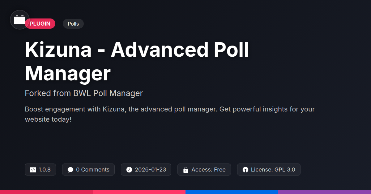 Let's be honest, capturing genuine audience interaction can feel like trying to herd cats, especially when your current solutions are about as exciting as watching paint dry. You’re a developer, an agency owner, or a dedicated open-source evangelist; you appreciate tools that are powerful, flexible, and don't come with a restrictive leash. You’re looking for something more than just a way to ask "Do you like apples or oranges?" You need a tool that can solicit opinions, gather feedback, run quick surveys, or even inject a bit of interactivity into your content without making your developers cry or your users yawn. You’ve probably poked around, installed a few things, only to find them either too basic, too bloated, or too… well, proprietary. What if there was a robust, yet surprisingly adaptable, poll manager born from a well-loved codebase, now free to evolve with the community's needs, offering you the kind of control and insight you actually crave? Imagine a solution that lets you sculpt data from your audience with precision, all while maintaining the freedom and transparency that only a truly open project can offer. It's time to stop settling for mediocre engagement tools and start building better community connections.