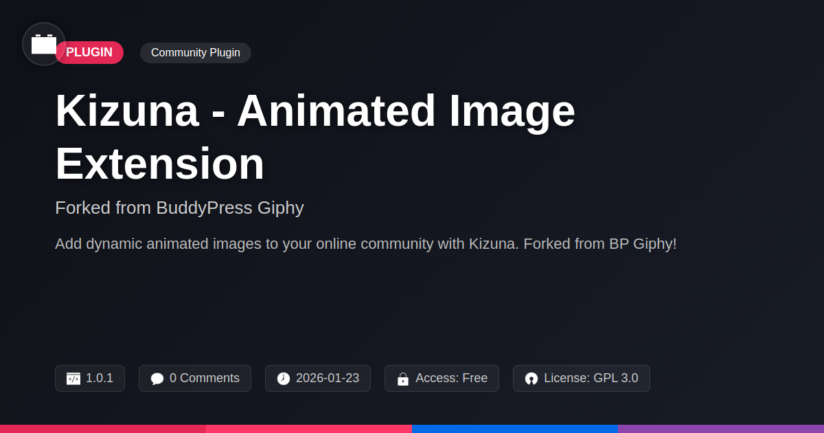 So, there you have it. Kizuna - Animated Image Extension. It's more than just a plugin; it's a digital expression enhancer, a community vibe booster, and, let's be honest, a pretty good way to inject a bit of silliness into your online spaces. We've seen how it can transform a static forum into a lively hub of interaction, how it empowers developers to build richer experiences without the headache, and how it gives your users a new, fun way to communicate. Because, let's face it, sometimes typing out an emotion is just too much effort. A perfectly timed animated reaction? Chef's kiss. For the code slingers out there, you've got a solid, extensible foundation to build upon. For the agency gurus, you've got a tool to impress your clients with engaging, dynamic community features. And for the open-source aficionados, you've got a project that thrives on community spirit and improvement. It's the digital equivalent of adding sprinkles to an already delicious cupcake. It’s about making your platform feel less like a sterile office and more like a vibrant coffee shop where ideas, and jokes, flow freely. Stop settling for the mundane. It’s time to embrace the animated, the expressive, the downright fun. Go forth, install Kizuna, and let the visual banter begin. Your community (and your sanity) will thank you.