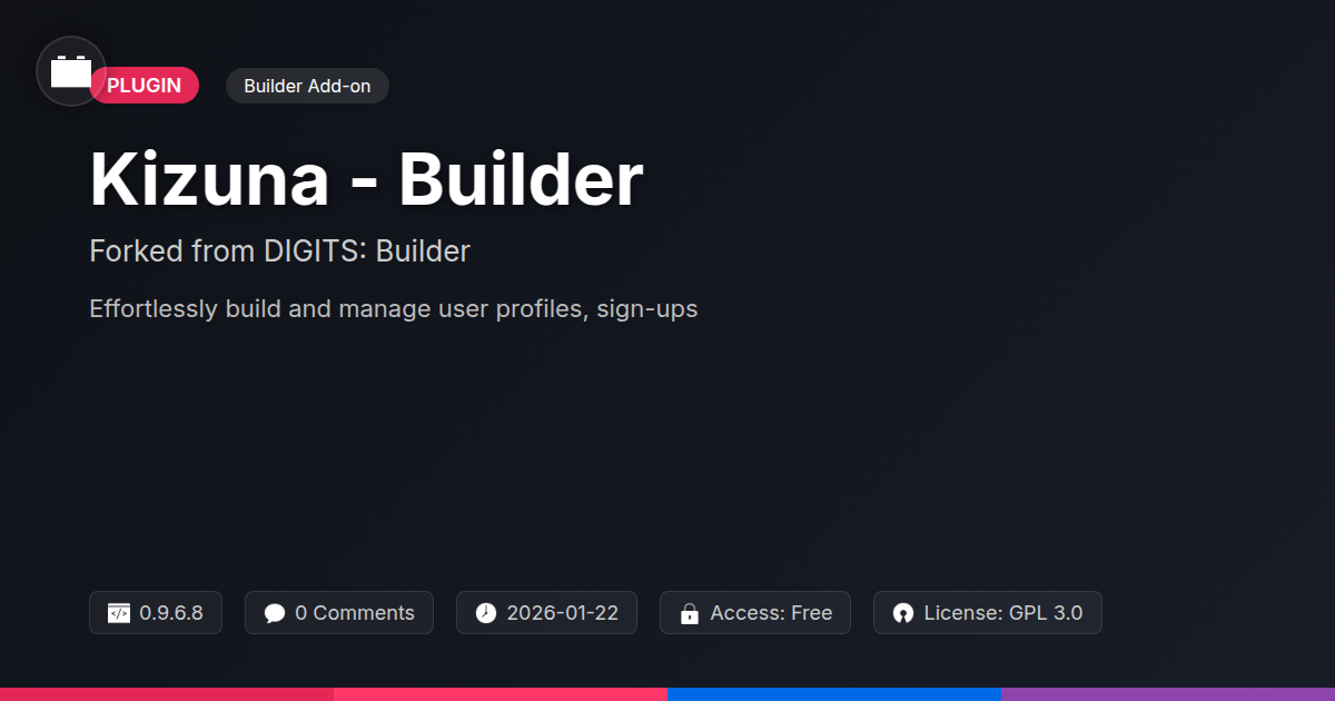 Tired of your site's user login and registration feeling like a relic from the dial-up era? Do you find yourself staring at the default forms, wondering if there’s a better way to welcome new users and manage existing ones? What if you could build login and registration experiences so slick, so integrated, they’d make your users forget they were dealing with yet another website? Well, buckle up, buttercups, because we’re about to introduce you to Kizuna - Builder. Forked and flourishing from the legendary DIGITS: Builder by Festinger Vault, Kizuna is here to liberate you from the mundane. It’s not just another plugin; it's your new best friend in the quest for superior user management. Designed for the discerning developer, the agency looking to impress, and the open-source aficionado who appreciates power with transparency, Kizuna brings a buffet of features to your table. Forget clunky, generic, and restrictive sign-up processes. Think custom fields that actually matter, social logins that feel native, and overall user management that's so intuitive, it practically writes its own documentation. We’re talking about taking control, adding personality, and ultimately, building connections – that’s what Kizuna, the ‘bonds’ in Japanese, is all about. This isn't just about logging in; it's about building a community, one seamless interaction at a time. Ready to ditch the drab and embrace the dazzling? Let’s dive in.