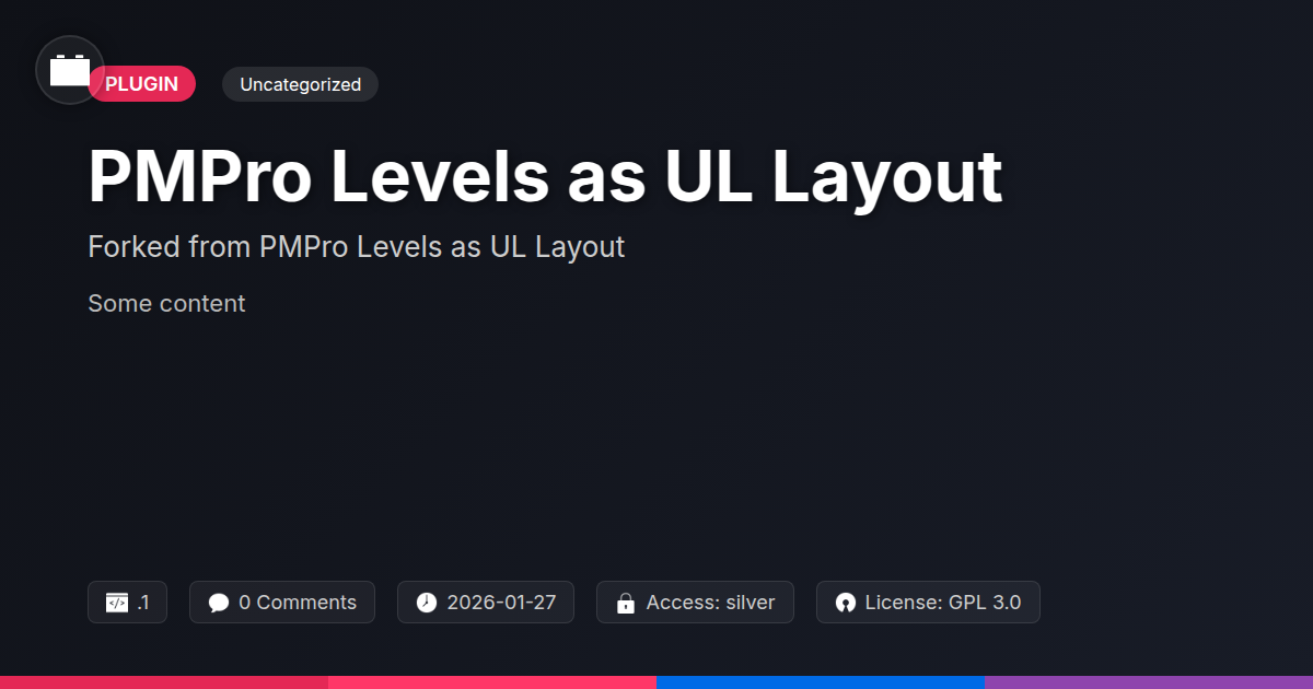 GrootMade is NOT affiliated with PMPro Levels as UL Layout or its original author. PMPro Levels as UL Layout™ is a trademark of its respective owner and use of it does not imply any endorsement or affiliation. This product has been forked under the GNU General Public License (GPL) and all non-GPL assets (such as proprietary images, fonts, and branding) have been removed. Distributing GPL-licensed code is 100% legal.