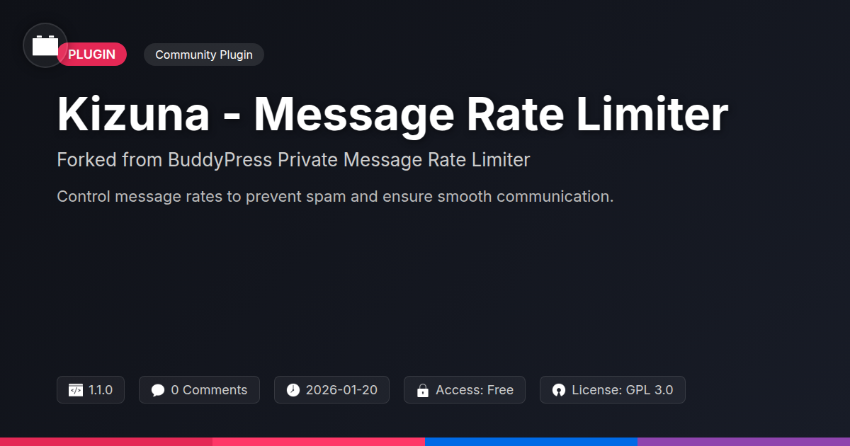 So there you have it, folks. Kizuna - Message Rate Limiter: the unsung hero your community platform didn't know it desperately needed. We’ve journeyed through the digital trenches, squinting at the blinding light of unsolicited messages, and have emerged with a solution that’s as practical as it is elegant. For too long, communities have suffered under the tyranny of the 'send' button, where genuine connections get buried under an avalanche of repetitive chatter and, let's be honest, the occasional questionable content. But fear not, for Kizuna is here to restore order, not with an iron fist, but with a well-timed nudge. It's the digital equivalent of having that one friend who, bless their heart, is a bit too enthusiastic, but you’ve lovingly taught them to pace themselves. This isn't about silencing your users; it's about empowering them to communicate effectively and respectfully. It’s about ensuring that your platform remains a place where valuable discussions can flourish, not a digital firehose. Developers, agencies, and even the most ardent open-source evangelists can appreciate a tool that works reliably, is easy to manage, and genuinely solves a problem. Kizuna offers that peace of mind, allowing you to focus on building amazing experiences, rather than constantly firefighting your inbox. Consider it the quiet guardian of your community's sanity. So, if you're ready to say goodbye to the message mayhem and hello to a more harmonious digital space, it’s time to integrate Kizuna - Message Rate Limiter. Your users, and your sanity, will thank you.