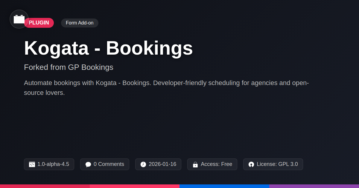 So, are you still stuck in the digital dark ages of appointment management, relying on overflowing inboxes and crossed-fingered hopes that no one double-booked themselves? We've journeyed through the challenges that plague simple contact forms when faced with the nuanced demands of scheduling, and we've unveiled Kogata - Bookings as your sophisticated, yet remarkably approachable, solution. You've seen how its comprehensive features go far beyond basic date pickers, offering robust management of availability, resources, recurring appointments, and capacity. We've highlighted its impressive customizability, proving that it’s not just a plugin, but a powerful extension of your development toolkit, designed to integrate seamlessly and deliver a branded experience your clients will commend. For the open-source enthusiasts among us, the fork nature of this plugin signifies a commitment to continuous improvement and adaptability, a promise of a solution that grows with the ever-evolving digital landscape. Importantly, we've shown how getting this powerhouse up and running is anything but a headache, offering a streamlined installation and setup process that respects your time and expertise. In essence, Kogata - Bookings isn't just about adding a booking feature; it's about empowering you to provide a superior service, reduce administrative friction for your clients, and ultimately, enhance the functionality and professionalism of the websites you build. It’s time to ditch the manual chaos and embrace the elegance of automated, intelligent scheduling. Elevate your projects with a booking solution that truly understands the needs of developers, agencies, and anyone who values efficiency and control.