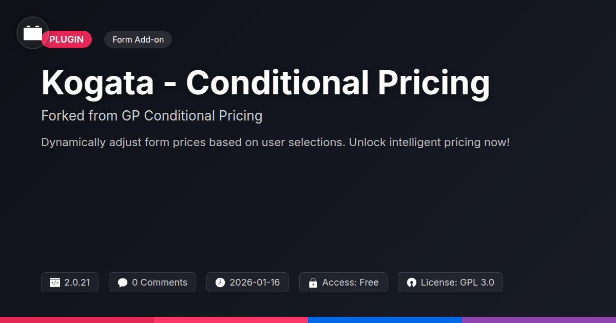 So, there you have it. You’ve navigated the murky waters of static form pricing and arrived at the shimmering oasis of dynamic, conditional cost adjustments. We’ve chuckled at the absurdity of forms that refuse to bend, admired the sheer audacity of a well-crafted fork, and even peered into the crystal ball of real-world applications. Kogata - Conditional Pricing isn't just another plugin; it's the smart, slightly sassy assistant your forms have been begging for. It’s the difference between a clunky, outdated price list and a fluid, intelligent pricing engine that adapts faster than a politician during election season. For the developers among us, it's a chance to build more robust, dynamic solutions without reinventing the wheel – you get the benefit of a solid foundation, supercharged with potential for even greater awesomeness. Agencies will rejoice at the ability to simplify complex quoting processes and offer clients a more transparent, interactive experience, potentially unlocking new revenue streams. And to our open-source aficionados? This is what it’s all about – taking something good, making it better, and sharing the innovation. Imagine those order forms, those registration sheets, those custom quote generators, all breathing life into their pricing structures. No more manual recalculations, no more 'uh, let me check that price for you…' – just pure, unadulterated, conditional pricing brilliance. It’s time to embrace the future, ditch the spreadsheet, and let your forms do the heavy lifting, intelligently. So, go ahead, give it a whirl. Your bottom line, and your sanity, will thank you. Happy form building, and may your prices always be precisely conditional!