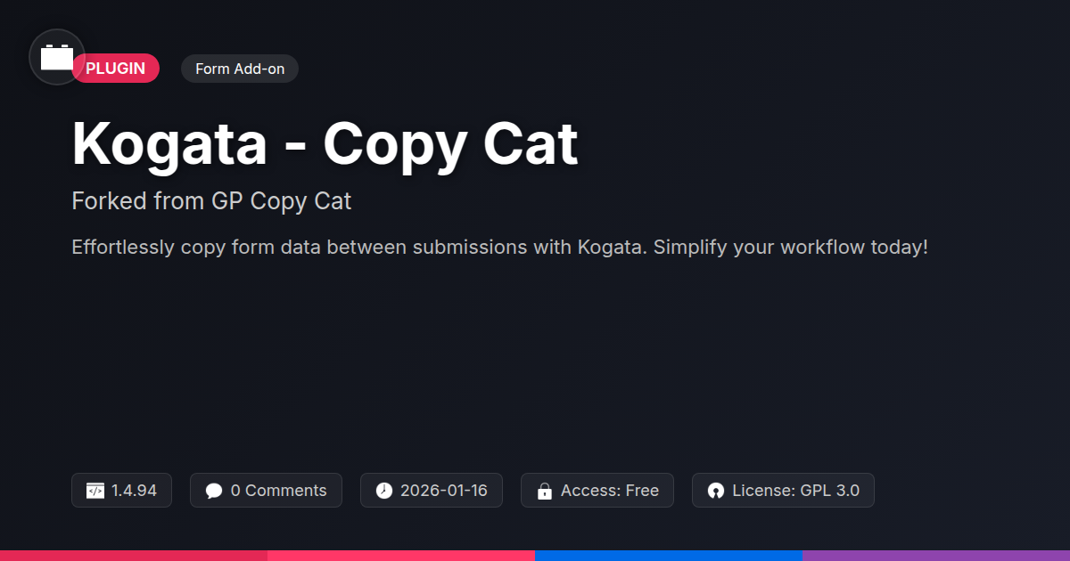 Tired of the endless cycle of copying and pasting form data like a digital hamster on a wheel? Are you a developer who secretly dreams of automating away the mundane? Or perhaps an agency that's drowning in repetitive data entry for client projects? What if there was a way to liberate your time and sanity, a tool that understands the developer's need for control and the agency's demand for efficiency, all while embracing the spirit of open-source collaboration? Let's face it, manually duplicating form entries is as exciting as watching paint dry, especially when you're juggling multiple client sites or complex data structures. You've likely encountered situations where you needed to replicate the exact information from one submission to another, maybe for a confirmation email, a secondary processing step, or simply to pre-fill a related form. The time wasted on this can be substantial, pulling you away from more critical tasks like building groundbreaking features or strategizing for client success. This is where Kogata - Copy Cat steps in, not just as a tool, but as your digital sidekick, forked from a venerable ancestor and enhanced for modern development needs. It’s designed to be intuitive enough for non-developers to grasp, yet powerful enough for seasoned coders to wield with precision. Imagine a world where copying form data is as simple as pointing and clicking, or even better, an automated process that runs seamlessly in the background. This isn’t a pipe dream; it’s the reality Kogata - Copy Cat brings to your projects, empowering you to do more with less effort.
