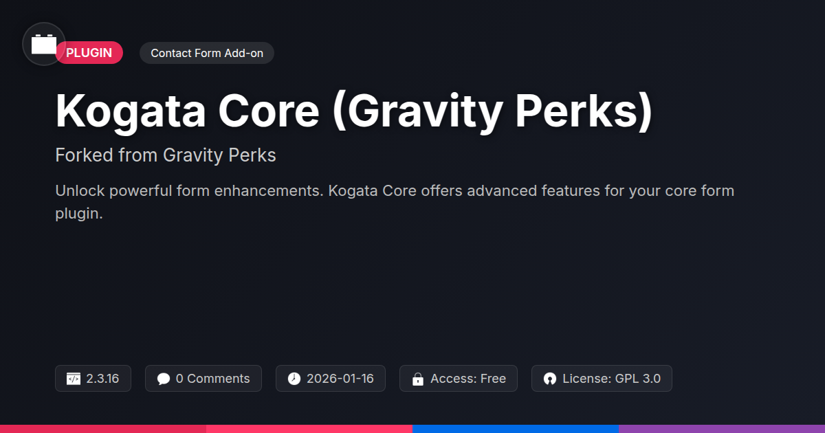 Remember that time you spent hours wrestling a form into submission? Yeah, we do too. Standard tools often feel like they were designed by people who've never actually built a form. Enter Kogata Core. It’s not just another plugin; it’s a community-driven fork. Think of it as taking something good, something almost great, and giving it a serious power-up. We’re talking advanced, flexible, and dare we say, powerful form-building capabilities. This is for the builders, the agencies, and the open-source enthusiasts who demand more. It’s for those who've hit the wall of 'can’t do that' and are tired of workarounds. We're embracing the spirit of shared development. You'll get the tools to craft forms that don't just collect data, but actually for you. Get ready to finally build forms that don't make you want to scream into a pillow.