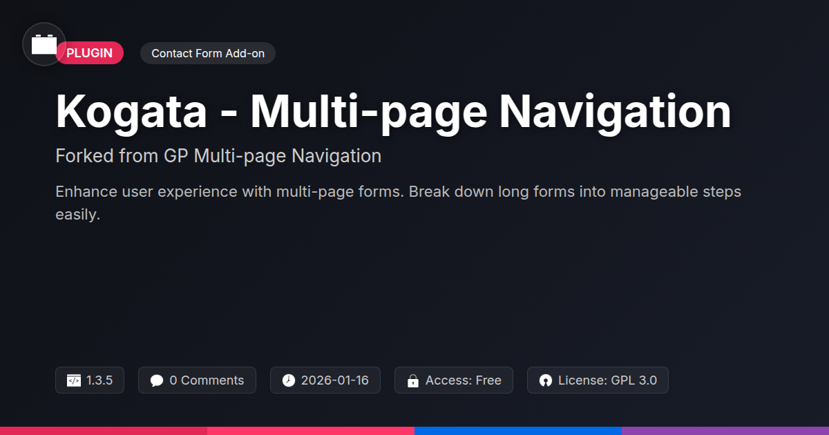 So there you have it. Forms. They’re not exactly the sexiest part of web development, are they? More often than not, they’re the digital equivalent of a lengthy tax form – necessary, but rarely enjoyable. We’ve dissected how Kogata - Multi-page Navigation, a clever fork of a well-loved tool, can transform these often-dreaded data entry points into streamlined, user-friendly experiences. It’s about understanding that a user’s journey through your form is just as critical as any other interaction on your site. By breaking down those monolithic forms into manageable, digestible chunks, you’re not just making them look better; you’re actively removing barriers that lead to user frustration and abandonment. For the WP developer and agency alike, this translates directly into higher conversion rates, reduced support queries, and ultimately, happier clients and end-users. The power lies in simplicity, and Kogata delivers it in spades. It’s the sensible choice for those who appreciate efficiency, elegant design, and a tool built with the developer's workflow in mind. Embrace the power of pagination and watch your form completion rates soar. It's time to stop fighting the form beast and start taming it with a solution that's as practical as it is effective.