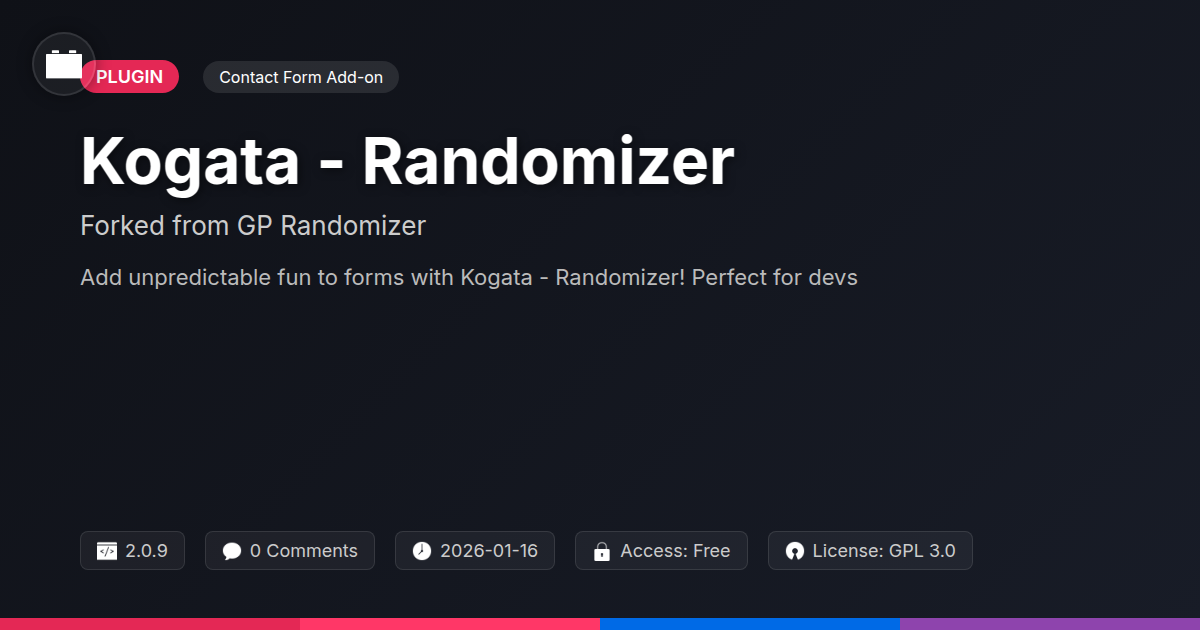 So, there you have it. We've journeyed from the initial spark of curiosity to the practical implementation and even the strategic impact of adding a touch of controlled chaos to your forms. Kogata - Randomizer isn't just another plugin; it's an invitation to experiment, to break free from the monotony, and to create web experiences that genuinely surprise and delight your users. For the discerning developer, the agency pushing boundaries, and the open-source enthusiast who appreciates a well-crafted tool, this offers a unique opportunity to differentiate. Remember, in a world saturated with predictable interactions, a little bit of thoughtful randomness can be the secret ingredient that makes your projects unforgettable. Don't be afraid to play, to explore the settings, and to discover the unexpected benefits. Whether it's making a survey feel more like a conversation or a simple contact form a little more engaging, the possibilities are richer when you’re willing to embrace the unpredictable. Go forth, inject some delightful discord into your forms, and watch your user engagement reach new, delightfully random heights. Your audience will thank you for it, probably with a surprised little laugh.