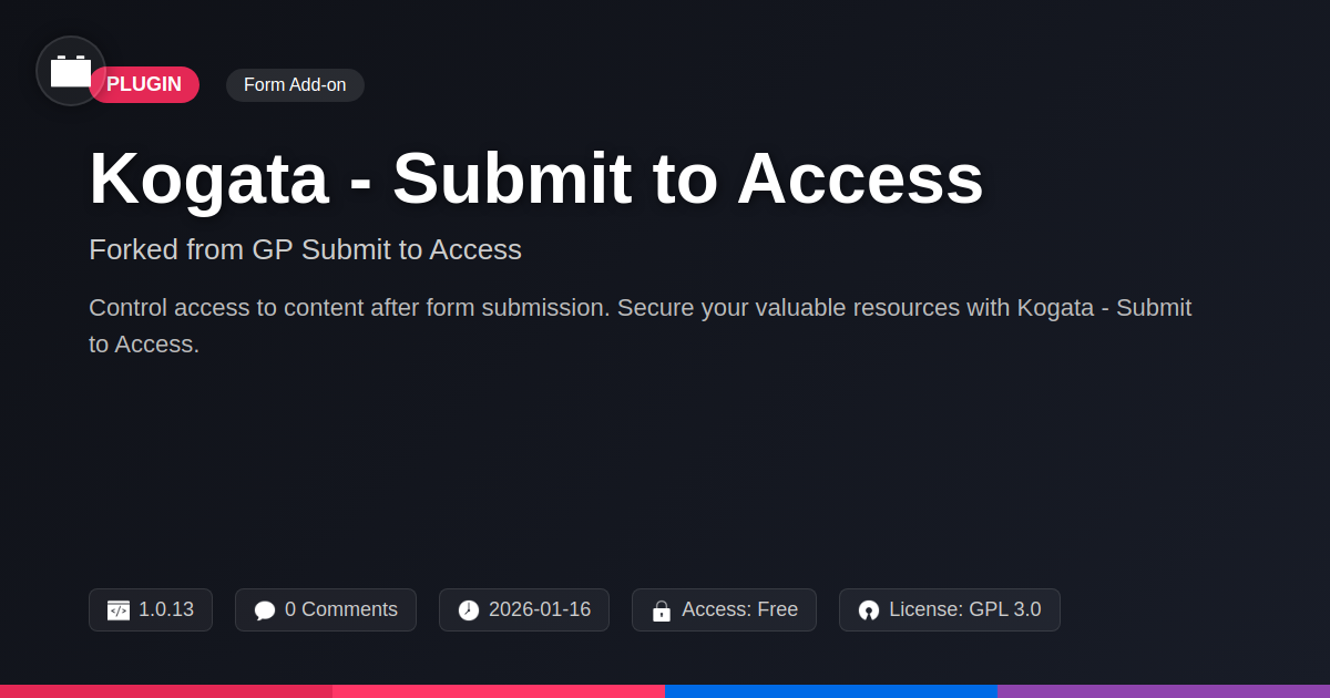 GrootMade is NOT affiliated with GP Submit to Access or its original author. GP Submit to Access™ is a trademark of its respective owner and use of it does not imply any endorsement or affiliation. This product has been forked under the GNU General Public License (GPL) and all non-GPL assets (such as proprietary images, fonts, and branding) have been removed. Distributing GPL-licensed code is 100% legal.