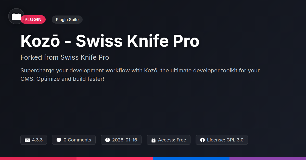 What if there was a single, reliable companion ready to tackle those everyday frustrations? A tool that’s less about adding bloat and more about surgically optimizing your workflow? Something that doesn't require a PhD in pluginology to operate, yet offers the depth and power to make even the most stubborn site behave? Imagine a digital Swiss Army knife, but for your web development arsenal – sharp, versatile, and ready for anything. That’s the spirit behind Kozō. It’s born from a desire to consolidate essential functionalities, banish repetitive tasks, and give you back the freedom to focus on the creative, the complex, and the downright cool parts of building amazing things online.