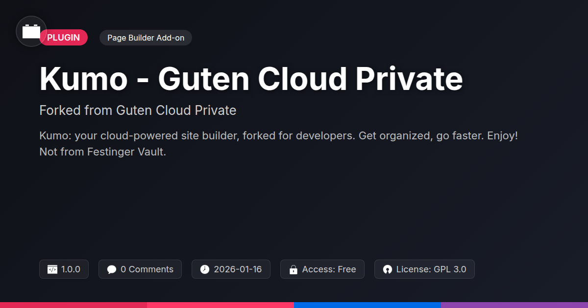 Are you tired of the same old, clunky tools that make building websites feel like wrestling a digital badger? Do you find yourself staring at your screen, contemplating a career change to artisanal cheese making, all because your current site editor is about as intuitive as advanced calculus explained by a drunken mime? If your answer is a resounding "YES!", then buckle up, buttercup, because we're about to introduce you to something that might just save your sanity (and your client relationships). We're talking about Kumo - Guten Cloud Private, a beast of a tool that's taken the best bits from its predecessor and added its own delightful twist. Think of it as that friend who borrowed your favorite sweater, made a few smart alterations, and returned it even better than before. This isn't just another block editor; it's a full-blown, feature-rich ecosystem designed to empower developers, dazzle agencies, and make open-source aficionados sing operatic tributes. Forget the headaches, the convoluted workflows, and the sheer existential dread of website creation. Kumo is here to streamline your process, unleash your creativity, and maybe even coax a genuine smile out of you. So, ready to ditch the digital drudgery and embrace a building experience that's actually… dare we say it… fun?