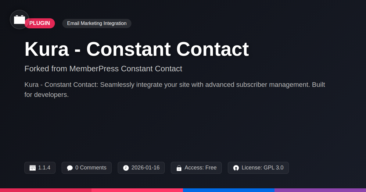 So, there you have it. No more existential dread every time a new lead signs up. Kura - Constant Contact is here to rescue you from the monotonous abyss of manual data transfer, offering a robust, reliable, and dare we say, fun way to keep your email lists brimming. For those of you who speak fluent code, appreciate a cleverly forked project, and value efficiency above all else, this integration is your new best friend. It’s the digital equivalent of finding out your printer actually works on the first try – a rare and beautiful thing. We’ve seen how it effortlessly bridges the gap between your website's lead capture forms and the powerful outreach capabilities of your favorite email marketing service. Think of it as the unsung hero of your digital marketing strategy, quietly doing the heavy lifting so you can focus on crafting compelling campaigns and engaging with your audience. Developers and agencies, you can finally stop offering manual data entry as a 'feature.' Open-source aficionados, you can rest easy knowing this project is being kept alive and kicking, benefiting from community spirit and continuous improvement. It's time to reclaim those precious hours, reduce the potential for human error, and ensure your leads are nurtured from the moment they express interest. Don't let your email marketing potential be limited by outdated, manual processes. Embrace the automation, leverage the power of a well-maintained fork, and let Kura - Constant Contact handle the grunt work. Because let's be honest, life's too short for spreadsheet tears.