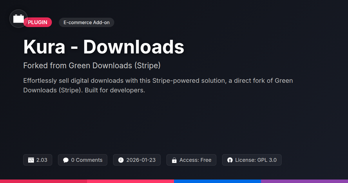 This is where Kura - Downloads swoops in, like a digital superhero, but way less spandex. Forked from a highly regarded and battle-tested solution, it’s designed for folks like you – the developers, the agencies, the open-source evangelists who demand functionality without unnecessary fluff, and who appreciate a tool that just works. We’re talking about a direct line from your checkout to your customers’ download folders, powered by a payment giant that doesn’t mess around. Ready to ditch the drama and embrace the digital delivery dream? Let’s dive in.