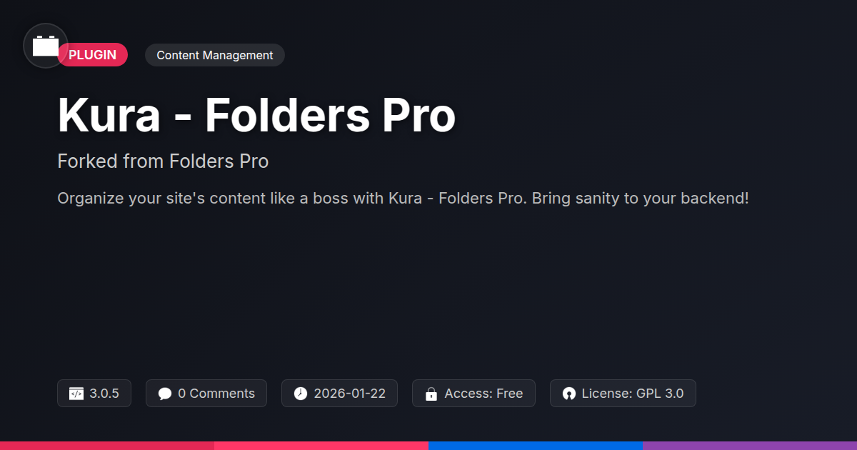 So, there you have it. We’ve journeyed from the digital depths of disarray to the serene peaks of organized content management. You’ve seen how Kura - Folders Pro, born from a legacy of excellent organization and fueled by the spirit of open source, isn't just another plugin – it's a fundamental shift in how you interact with your website's backend. For the builders, the creators, the agencies juggling multiple projects and demanding clients, this tool is more than just a time-saver; it’s a sanity-saver. It’s the digital filing cabinet that never gets lost, the perfectly labeled archive that’s always at your fingertips. We’ve underscored the sheer power of a well-structured environment, not just for aesthetics, but for tangible performance gains, reduced support overhead, and a more enjoyable creative process. And for the open-source aficionados, the promise of a collaborative, transparent, and evolving solution should resonate deeply. It’s about taking control, fostering efficiency, and contributing to a shared vision of a cleaner, more powerful web. Embracing Kura - Folders Pro means embracing a workflow where finding what you need is never a chore, but a given. It’s about freeing up your mental bandwidth to focus on what truly matters: building amazing things. So, go forth, embrace the folders, and let the digital tidiness begin. Your future, more organized self will thank you.