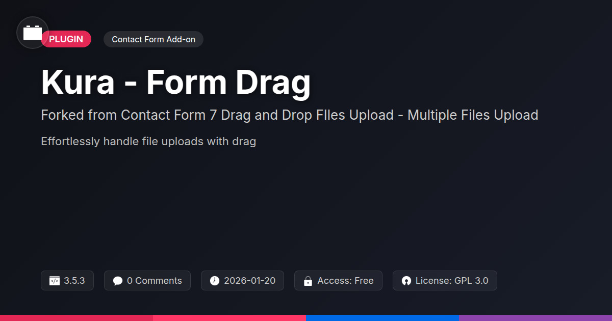 So, you've journeyed through the wonderland of Kura - Form Drag & Drop Upload, and hopefully, you're no longer considering your current file upload system a necessary evil. We've seen how this isn't just another iteration, but a thoughtful evolution, a refined champion in the often-frustrating arena of web forms. For developers weary of wrestling with complex configurations and for agencies striving for seamless client integrations, Kura presents itself as a breath of fresh air. Its drag and drop interface isn't just for show; it's a testament to user-centric design that translates into fewer headaches and happier end-users. The commitment to being developer-friendly, offering robust handling of multiple files, and respecting the solid foundations it builds upon, makes Kura a truly special addition to your toolkit. It’s the kind of plugin that makes you nod in appreciation, thinking, 'Ah, someone actually thought this through.' It’s for the tinkerers, the builders, the ones who appreciate elegant solutions. If you've ever found yourself muttering expletives at a stubborn upload field, consider this your official invitation to a calmer, more efficient web development experience. Give Kura a whirl – your sanity, and your users, will thank you. Embrace the simplicity, revel in the functionality, and make your forms as delightful to use as they are effective.