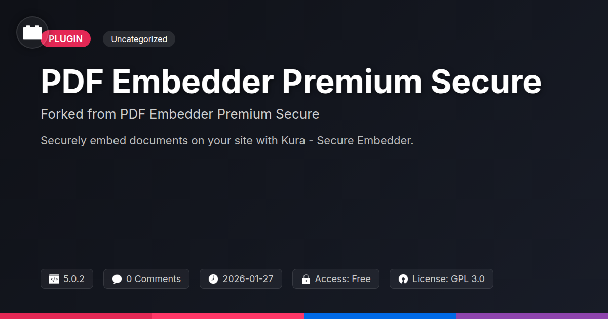 So, there you have it. You've navigated the murky waters of insecure document embedding, and emerged with the knowledge of Kura - Secure Embedder. It’s not just another plugin; it’s a statement. It says you value your content, you appreciate elegant solutions, and you’re not afraid to embrace the power of the open-source community to achieve top-tier security. For too long, sharing important documents online has felt like balancing a fragile vase on a unicycle during an earthquake. You’ve had to choose between presenting your work beautifully or keeping it reasonably safe, often compromising on one or the other. Kura flips that script. It's built for developers who understand the nuances, for agencies who need to deliver professional, secure solutions to clients, and for every open-source advocate who believes in transparency and collective improvement. Think of it as giving your digital documents their own VIP velvet rope – accessible to your audience, but with a bouncer dressed in military-grade security protocols. No more awkward downloads, no more content that looks like it’s clinging to dear life by a thread. Just smooth, secure, and sophisticated embedding that reflects the quality of your work. Dive into Kura, experience the peace of mind that comes with robust protection, and join a community that’s making secure content embedding not just functional, but smart. Your documents, and your sanity, will thank you.