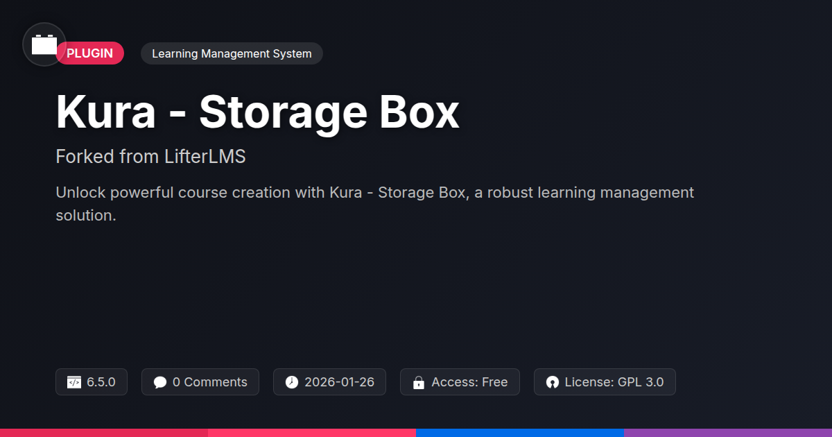 Tired of wrestling with clunky course platforms that feel like they were built in the stone age? Ever gazed upon the magnificent edifice of a premium learning management system and thought, 'If only I didn't have to sell a kidney to afford it'? Well, hold onto your developer hats, because we've got something cooking that addresses that very itch. Imagine taking a robust, feature-rich engine, stripping away the unnecessary bloat and the eye-watering price tag, and giving it a fresh coat of paint. That’s precisely what Kura - Storage Box is all about. We’ve taken a proven powerhouse, the kind that’s been meticulously crafted and battle-tested, and forked it to create a solution that’s as powerful as it is accessible. This isn't about reinventing the wheel; it's about giving you a perfectly good wheel, free of charge, that you can attach to your existing vehicle and hit the road. Whether you're a solo developer spinning up a niche course site, an agency looking to build custom learning portals for clients without breaking the bank, or an open-source devotee who believes knowledge and powerful tools should be democratically available, Kura - Storage Box is designed to be your new best friend. It’s the solution you’ve been waiting for, offering premium functionality without the premium price tag. Let’s dive into why this might just be the missing piece in your digital learning puzzle.