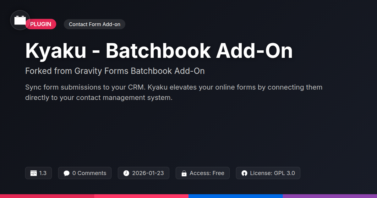 So, let’s face it, the digital world doesn’t exactly reward us for our diligence in manual data entry. If anything, it just throws more forms at us, expecting us to magically turn them into actionable insights. But you, dear developer, agency owner, or benevolent open-source fan, deserve better. You deserve to spend your precious mental energy on architecting brilliant solutions, not on tediously transferring Mrs. Higgins’s poodle grooming preferences into your CRM. Kyaku is here to liberate you from that digital purgatory. It’s not just an add-on; it’s your new digital intern who never complains, never takes coffee breaks, and never accidentally deletes the entire contact list. Built on a solid foundation, this fork offers a straightforward, yet powerful, way to ensure that every form submission contributes directly to your business goals, without you lifting a finger – well, except for the initial setup, which, let’s be honest, is practically a spa day compared to the alternative. Imagine the sheer joy of logging into your Batchbook and seeing a pristine list of leads, all nurtured and organized thanks to your clever decision to automate. It’s the kind of efficiency that makes your clients rave and your colleagues weep with envy. So ditch the spreadsheets, banish the copy-paste blues, and embrace the future of seamless form-to-CRM integration. Your future, more relaxed self will thank you.