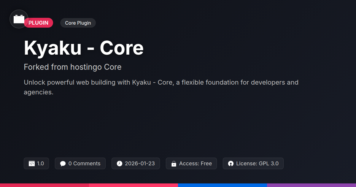 Tired of feeling like a cog in someone else's machine? Ever wished you could take the reins of a powerful framework and steer it in your own direction? We get it. The digital landscape is a wild west, and sometimes you need a trusty steed that you can truly call your own. That's where Kyaku - Core comes in. It's not just another tool; it’s a declaration of independence for your web development projects. Forged from the robust and admired structure of a leading core system, Kyaku - Core offers you a foundation built on proven reliability, but with a fresh outlook and the freedom to innovate. Whether you're a solo developer wrangling complex client sites, an agency building scalable solutions, or an open-source aficionado who believes in sharing and improving, Kyaku - Core is designed to empower you. It strips away the unnecessary baggage and focuses on providing a lean, mean, and incredibly versatile engine for your creations. Get ready to ditch the constraints and embrace the possibilities. This is your chance to build smarter, faster, and with more personal flair than ever before.