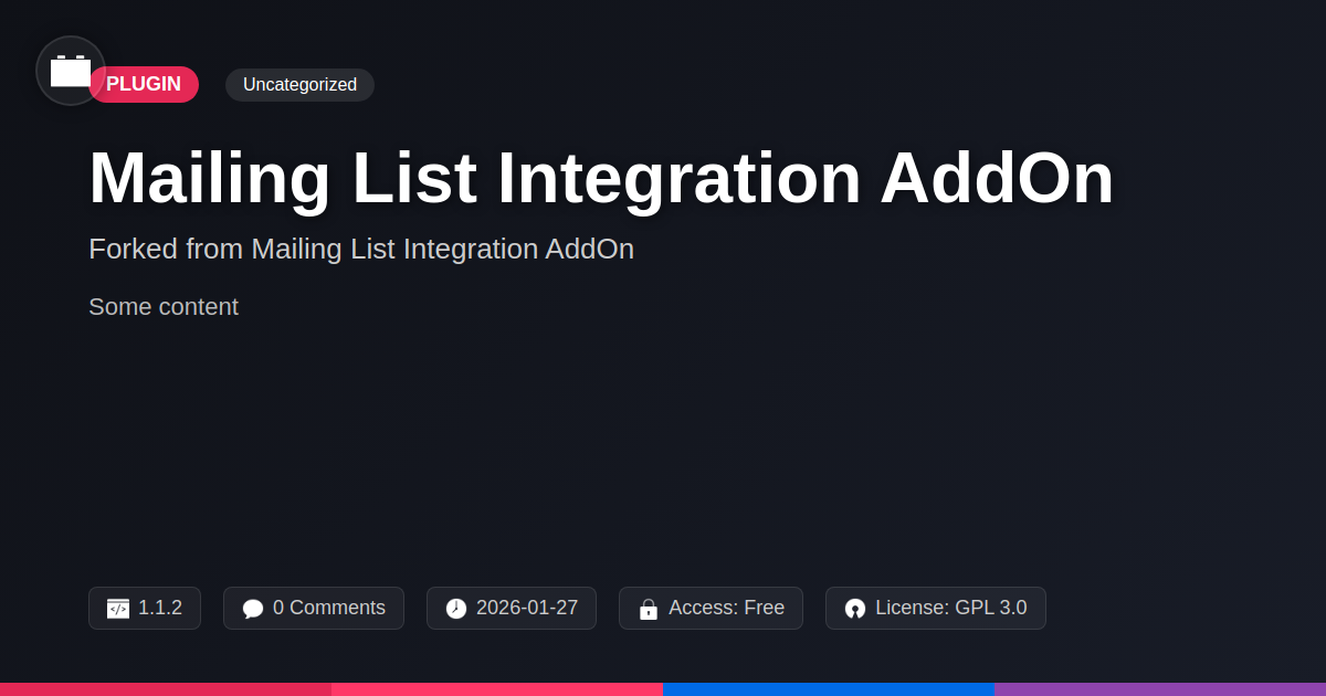 GrootMade is NOT affiliated with Mailing List Integration AddOn or its original author. Mailing List Integration AddOn™ is a trademark of its respective owner and use of it does not imply any endorsement or affiliation. This product has been forked under the GNU General Public License (GPL) and all non-GPL assets (such as proprietary images, fonts, and branding) have been removed. Distributing GPL-licensed code is 100% legal.