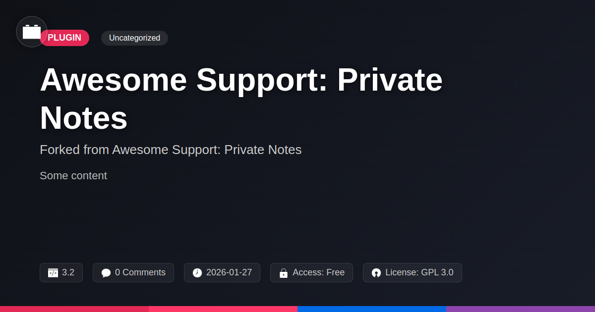 GrootMade is NOT affiliated with Awesome Support: Private Notes or its original author. Awesome Support: Private Notes™ is a trademark of its respective owner and use of it does not imply any endorsement or affiliation. This product has been forked under the GNU General Public License (GPL) and all non-GPL assets (such as proprietary images, fonts, and branding) have been removed. Distributing GPL-licensed code is 100% legal.