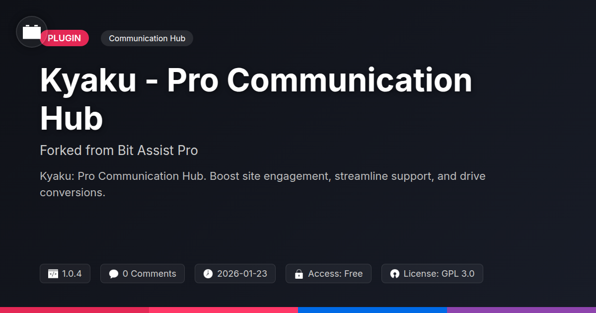 You've seen how Kyaku - Pro Communication Hub isn't just another plugin; it's a strategic overhaul for your website's engagement. For the developers out there, it's liberation from the tyranny of fragmented communication tools, freeing up valuable cycles for what you do best: building awesome digital experiences. Agencies, imagine the sheer relief and increased efficiency of having all your client communications centralized, leading to happier clients and a more profitable operation. And to our cherished open-source community, Kyaku represents a commitment to transparency, flexibility, and collaborative power, all wrapped up in a remarkably capable package. We understand the constant push for innovation and the need for tools that not only perform but also align with your values. Kyaku delivers precisely that. It’s about transforming those fleeting website visits into meaningful interactions, those casual inquiries into loyal customers, and those scattered messages into a cohesive, manageable stream of communication. Stop letting your website's potential slip through the cracks of poor communication. Embrace the power of a unified hub, designed with your needs in mind from the ground up. It’s time to elevate your online presence and make every conversation count. Ready to streamline your digital world? The choice is clear.