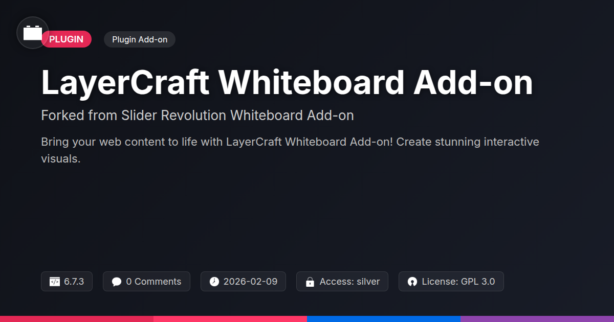 GrootMade is NOT affiliated with Slider Revolution Whiteboard Add-on or its original author. Slider Revolution Whiteboard Add-on™ is a trademark of its respective owner and use of it does not imply any endorsement or affiliation. This product has been forked under the GNU General Public License (GPL) and all non-GPL assets (such as proprietary images, fonts, and branding) have been removed. Distributing GPL-licensed code is 100% legal.