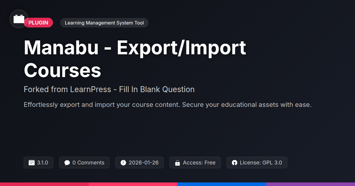 Ever felt like you're wrestling an octopus just to move your course content from one digital classroom to another? Or maybe you've built a magnificent online academy, only to realize migrating it to a new platform or backing it up feels like trying to herd cats through a car wash? We’ve all been there, haven't we? The dream of a smooth, hassle-free data transfer for your educational empire often gets bogged down in tedious manual work, proprietary lock-ins, and the ever-present fear of accidental data deletion. Imagine a world where exporting your meticulously crafted courses, complete with their dazzling lessons, quizzes (the tricky fill-in-the-blank kind included!), and student progress, is as simple as a drag-and-drop. A world where importing them into a fresh installation or a different site takes mere moments, not agonizing hours. This isn't just wishful thinking; it's the reality this tool brings to your fingertips. Built for those who appreciate the beauty of open-source flexibility and the efficiency of robust functionality, this solution is designed to be your trusty sidekick in the often-chaotic realm of online education development.