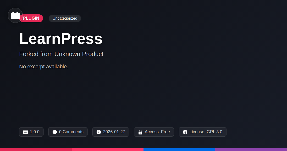 GrootMade is NOT affiliated with LearnPress - Instamojo Payment or its original author. LearnPress - Instamojo Payment™ is a trademark of its respective owner and use of it does not imply any endorsement or affiliation. This product has been forked under the GNU General Public License (GPL) and all non-GPL assets (such as proprietary images, fonts, and branding) have been removed. Distributing GPL-licensed code is 100% legal.
