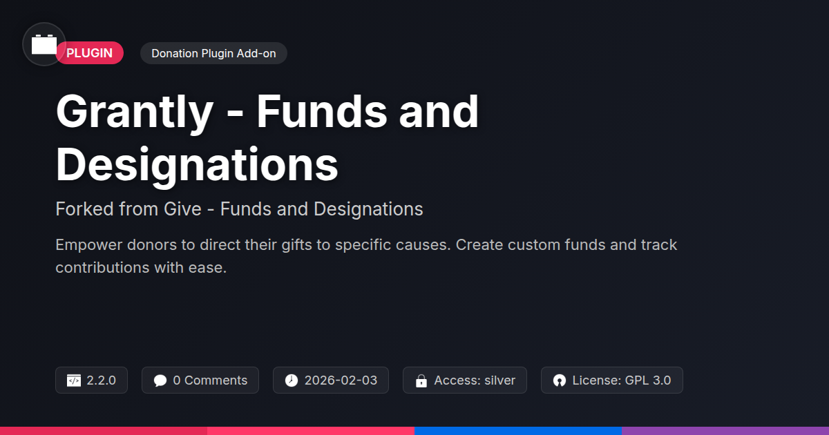 GrootMade is NOT affiliated with Give - Funds and Designations or its original author. Give - Funds and Designations™ is a trademark of its respective owner and use of it does not imply any endorsement or affiliation. This product has been forked under the GNU General Public License (GPL) and all non-GPL assets (such as proprietary images, fonts, and branding) have been removed. Distributing GPL-licensed code is 100% legal.