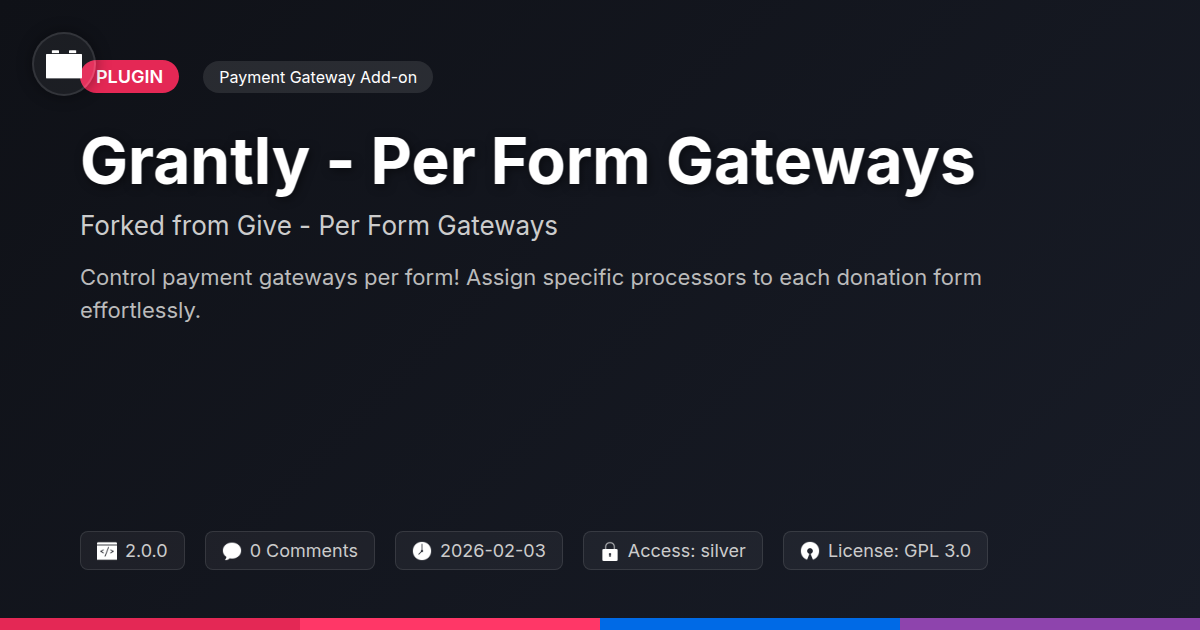 So, there you have it. Grantly - Per Form Gateways is more than just another plugin; it's a digital breath of fresh air for anyone who’s ever wrestled with the rigidity of global payment gateway settings. We’ve all spent those late nights staring at screens, trying to make one form play nice with a specific processor while simultaneously trying not to break another. It's the kind of pain point that developers and agencies have just come to accept as part of the job, like debugging CSS or explaining to clients why their logo looks different on mobile. But why should we accept mediocrity when a better way exists? This elegant solution, forked from a well-respected concept and imbued with the spirit of open-source collaboration, puts the power squarely back where it belongs: tied directly to the forms that need it most. Imagine building out complex sites for clients, each with unique donation or payment requirements, and being able to assign the exact payment gateway for each without breaking a sweat. No more convoluted workarounds, no more sacrificing functionality for simplicity. It’s about precision, efficiency, and ultimately, a more seamless experience for everyone involved – from the developer crafting the solution to the end-user making a payment. If you're a developer aiming for pixel-perfect functionality, an agency looking to impress clients with smooth integrations, or an open-source enthusiast who appreciates smart, community-driven tools, Grantly - Per Form Gateways is poised to become an indispensable part of your toolkit. It’s time to ditch the headaches and embrace the clarity. Your forms, and your sanity, will thank you.